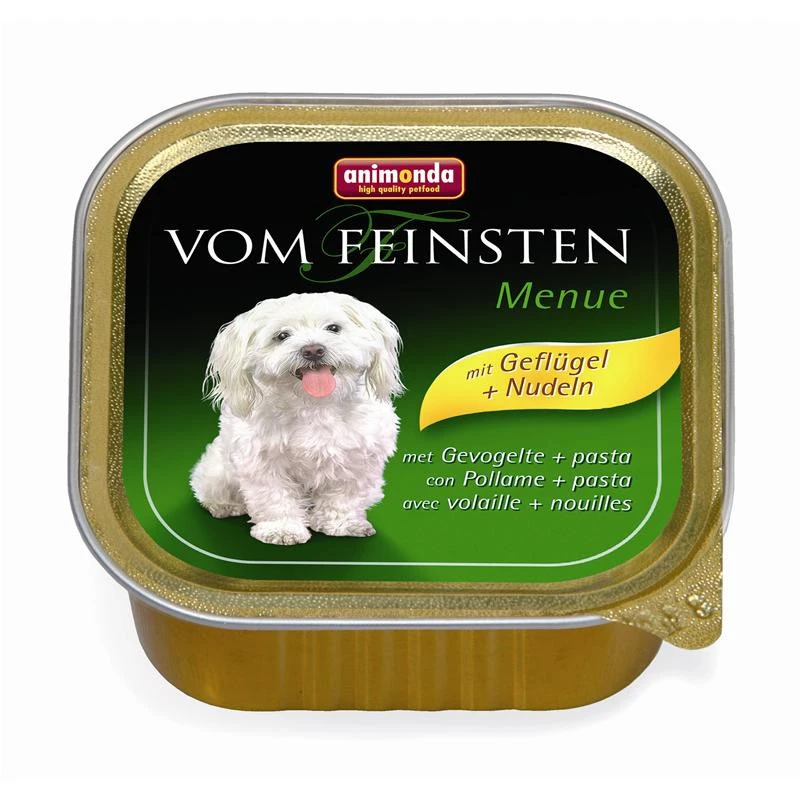 Animonda Vom Feinsten ist ein gesundes und leckeres Futter, das Ihrem Hund sicherlich schmecken wird. Bei der Herstellung wird darauf geachtet, dass nur natürliche Zutaten verarbeitet werden. Animonda Vom Feinsten wird Ihrem Hund schmecken. Das leckere Nassfutter ist genau auf die Bedürfnisse Ihres Hundes abgestimmt und schmeckt auch wählerischen Hunden sehr gut. Hier können Sie sicher sein, dass auch die Zutaten enthalten sind, die auf der Verpackung stehen. Dieses Produkt versorgt Ihren Hund wichtigen Vitaminen und Nährstoffen und wird ihm auch noch gut schmecken. Die Inhaltsstoffe sind extra auf die Bedürfnisse von Hunden abgestimmt und sorgen dafür, dass er lange gesund und vital bleibt. Ihr Hund wird dieses Produkt lieben und es wird ihm sichtbar schmecken. Probieren Sie auch die weiteren feinen Geschmacksrichtungen die Sie in unserem Onlineshop günstig finden können.