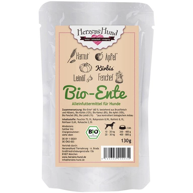 Sind Sie auf der Suche nach Herzenshund Bio mit Bio-Ente und Bio-Gemüse im 15x 130 g Pack werden Sie bei zooheld.de fündig. Bei uns bekommen Sie alles, was Sie für die Haltung und Pflege Ihres Haustieres benötigen. Ob Hund, Katze, Fische, Nager, Vögel oder Pferde, bei uns können Sie Ihren kompletten Tierbedarf kaufen. Wir führen neben Nass- und Trockenfutter auch Spezialfutter für Problemfälle. Sie werden bei uns auch immer günstige Angebote finden und praktische Vorratspackungen. Ab einem Bestellwert von 29 Euro liefern wir Ihnen die Ware versandkostenfrei an Ihre Wunschadresse. Natürlich können Sie die Artikel innerhalb von 30 Tagen zurückgeben, falls Sie Ihnen nicht gefallen. Sehen Sie sich einfach in unserem großen Sortiment um und finden Sie alles was Sie benötigen. Bei Fragen und Anregungen steht Ihnen unser Support zur Verfügung, der Ihnen gerne weiterhilft.